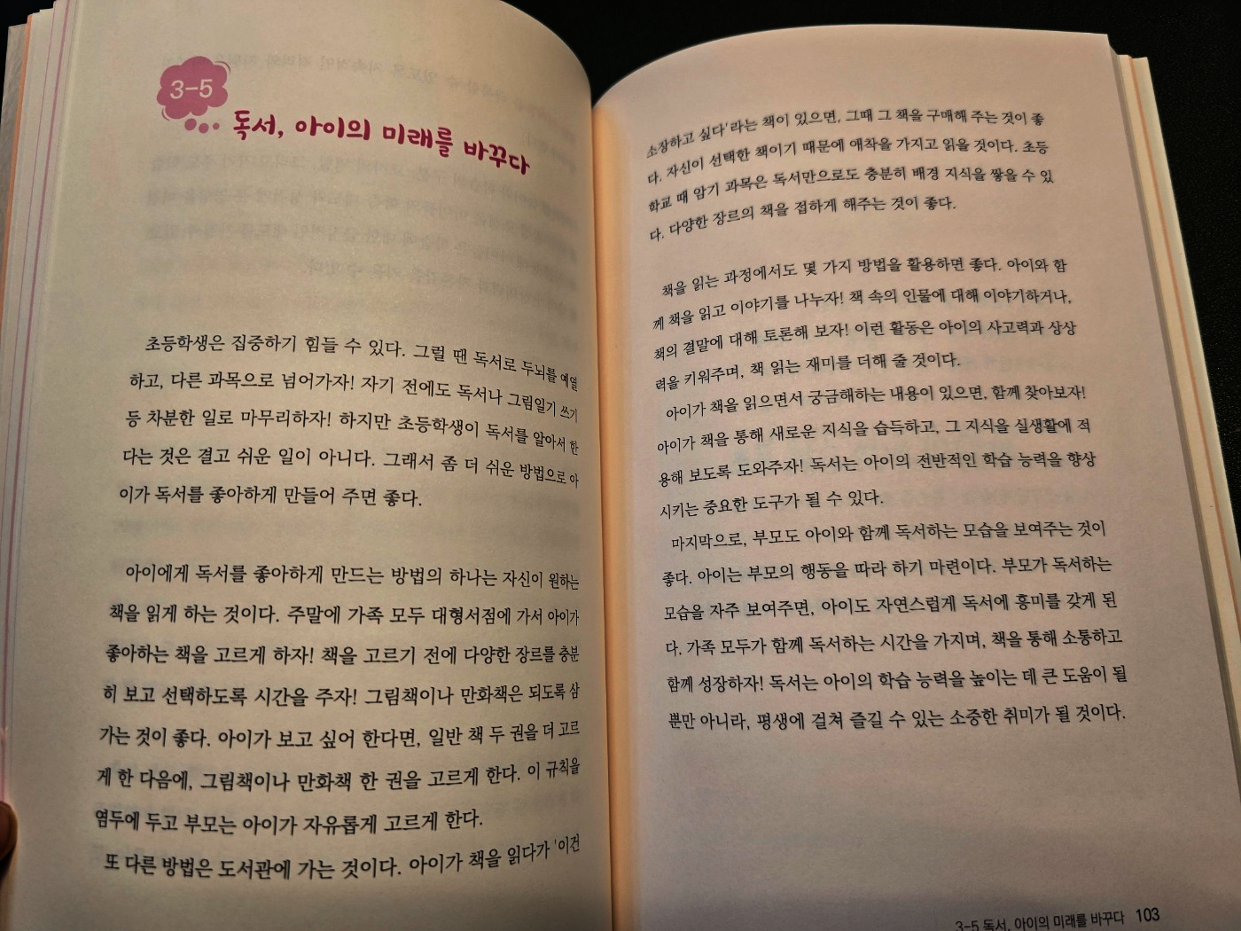 읽어내려갈수록 내가 열심히 아이를 위해 지도한다고 온갖 출판사의 문제집들과 각종 학원들을 보내고 있지만 정작 중요한 학습 환경을 어떻게 조성할지에 대해서는 깊이 생각하지 못했음을 깨달았다.