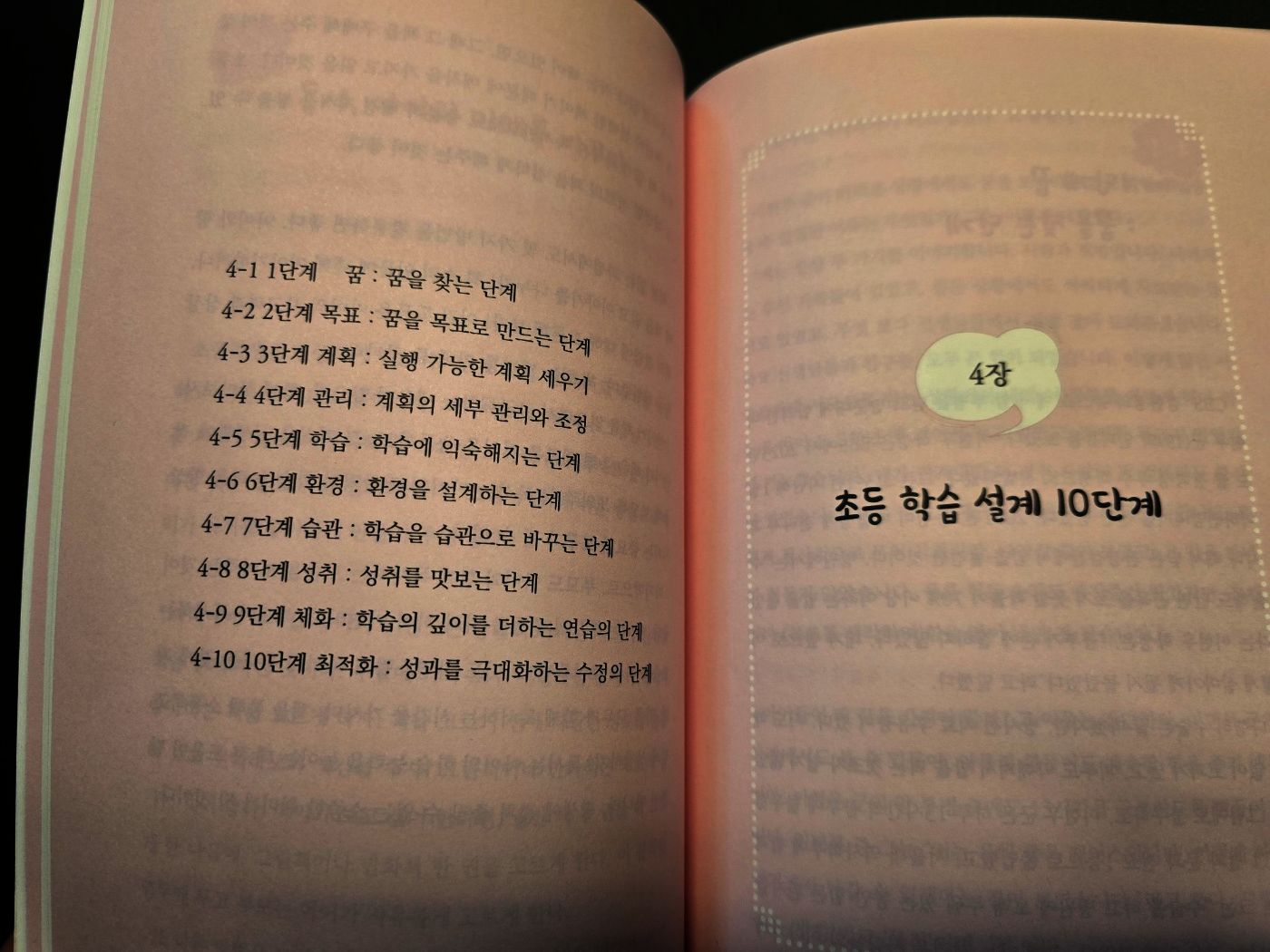 아울러 저자가 제시하는 '초등학습 설계 10단계'에 대한 장기적인 학습 태도를 만들수 있는 체계적인 로드맵을 자세히 설명해주고 있다. 역시 자기주도학습에서는 아이의 공부의지가 제일 중요한 시작점인거 같다. 요즘 고교학점제에서 얘기하듯 자신의 진로를 먼저 찾을수 있는게 핵심인듯 하다.