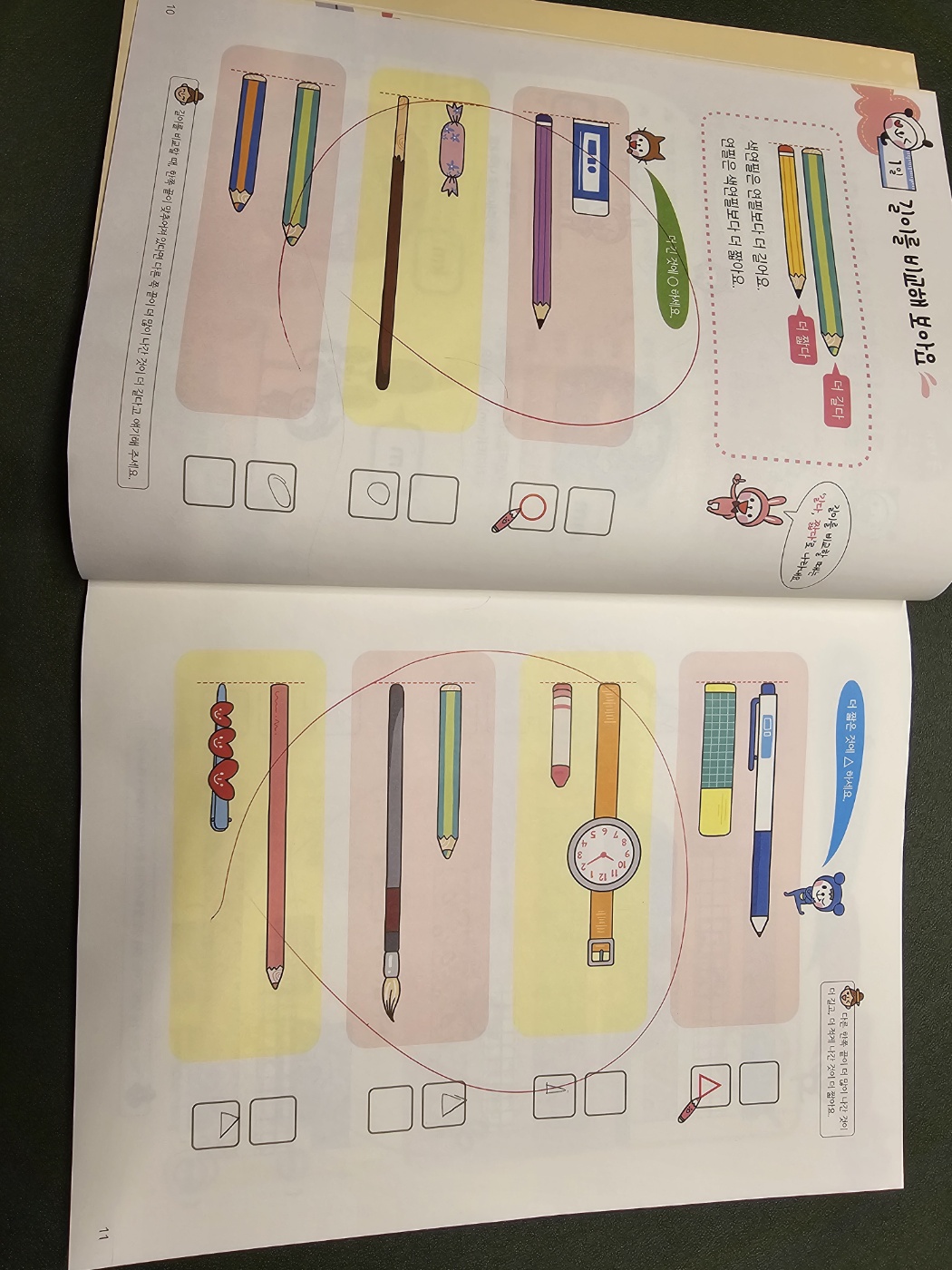아이가 직접 빈칸을 채워보고 따라쓰며 읽으면서 개념을 익힐수 있고 자연스럽게 익힐수 있어여. 아울러 문제를 직접 풀어보면서 하나하나 단위와 측정의 기초를 잘 배울수 있어여. 알맞게 선 연결하기, 색칠하기 등 다양한 유형으로 흥미롭게 공부할수 있었어여. 아이도 지루해하지 않고 잘 따라왔고요.