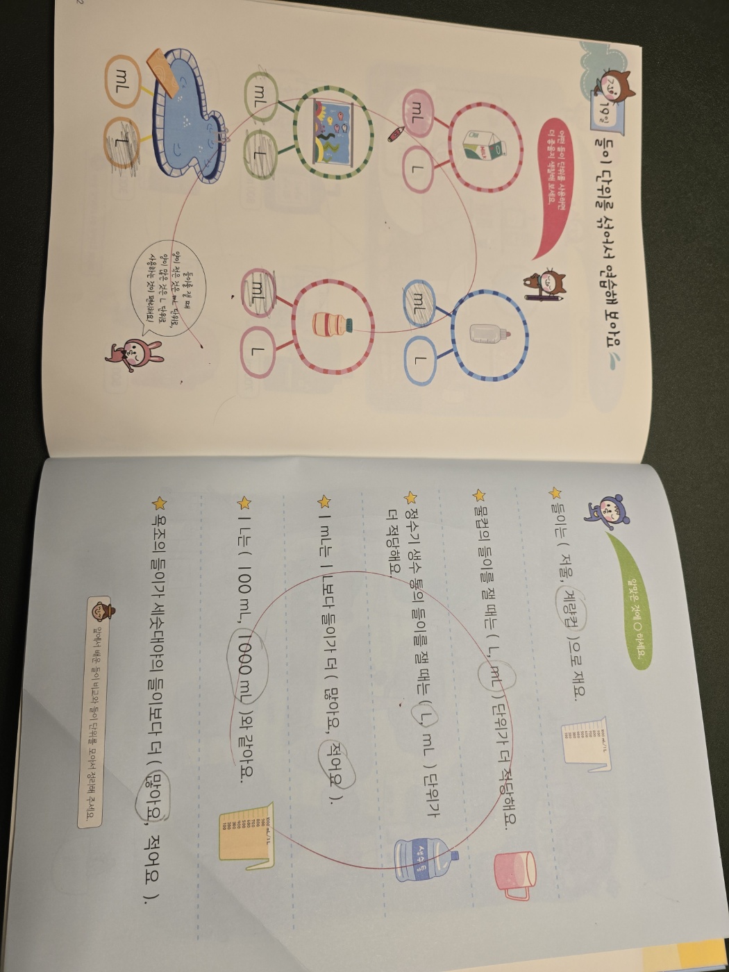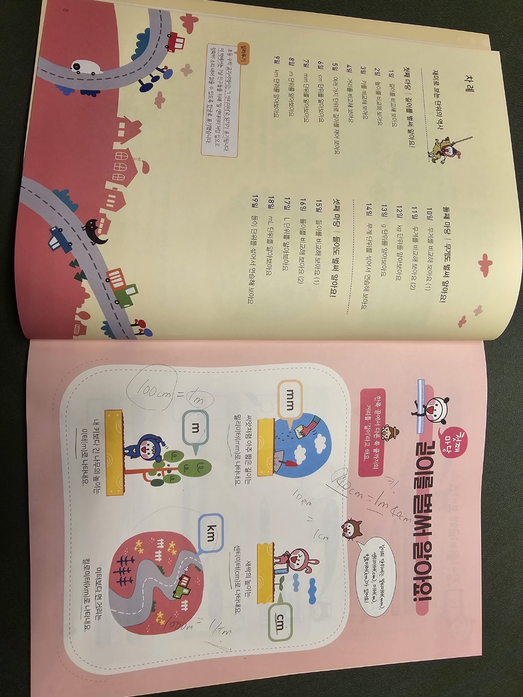 차례를 보아하니 아이가 꼭 알고 있어야 하는 길이, 무게, 들이에 대한 개념을 배울수 있는 교재에여. 대충 알아본적이 있지만 아직도 헷깔리고 잊어버리는 아이에게 다시 한번 되짚어 볼수 있는 좋은 기회라 생각하고 열공했어여.
