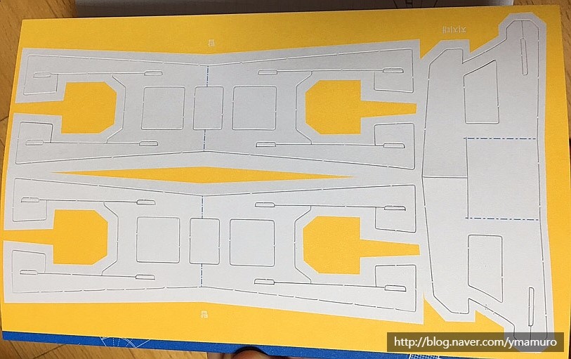 전 손으로 뜯다가 찢어질까봐 칼로 뜯었어요. 앞뒤날개가 상당히 튼튼해서 다리가 잘 서있답니다.