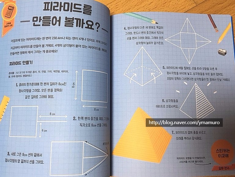 우리 아이는 아직 취학전이라 직접 피라미드를 만들지는 않구요.(자를 이용하는 부분이 익숙치 않아서)