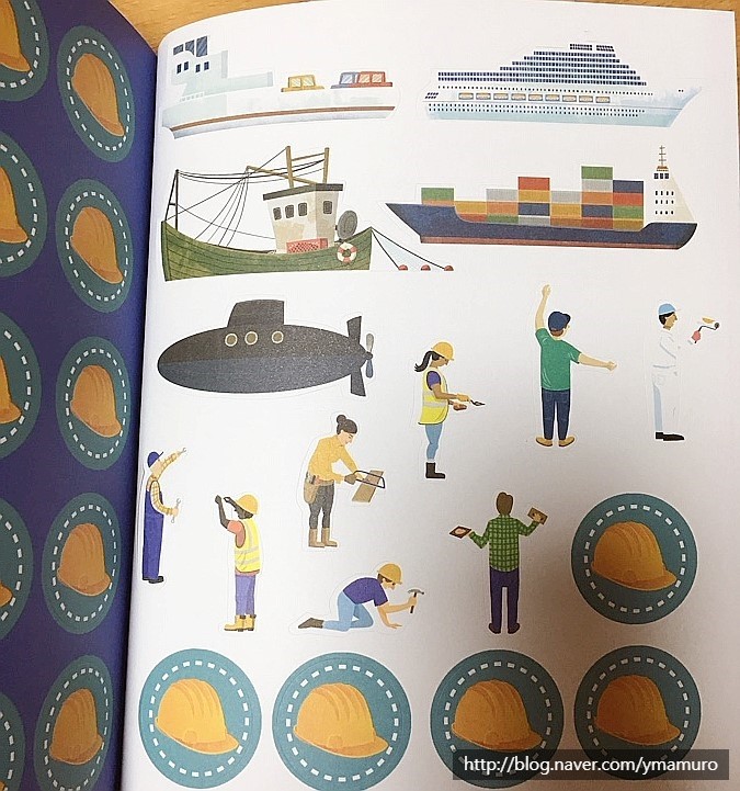 여러가지 일을 도와주는 사람들을 스티커로 붙이면서 이름을 익히는 부분도 있어요.