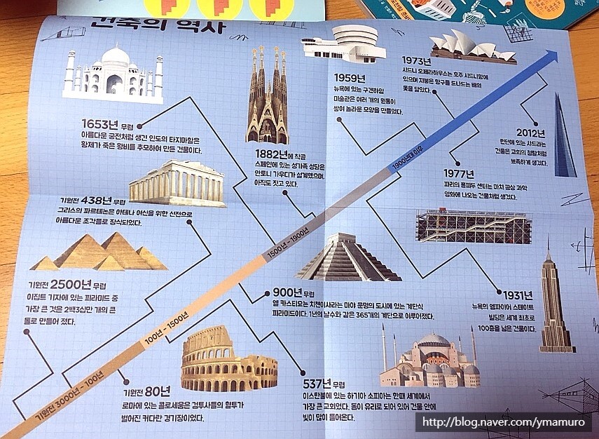 세계의 유명한 건축물에 대한 설명되 모양이 나와있어요.