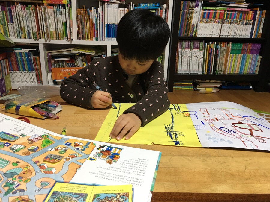 어린이집에서 집까지 오는 길을 만들겠다는데...허허허 청계천 그리고 있던데...A4가 수십장 있어야 집에 올 수 있겠어요.