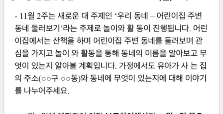 우리 어린이집 교육과정은 지금 우리동네에 대해서 딱 배우고 있거든요.