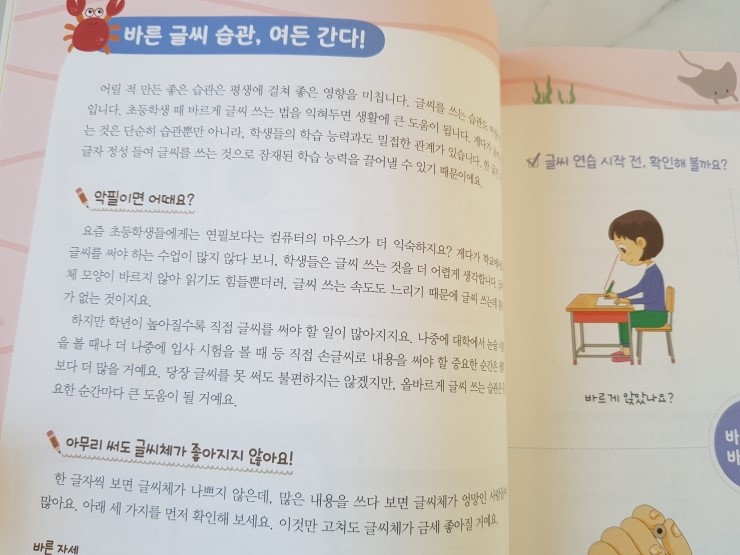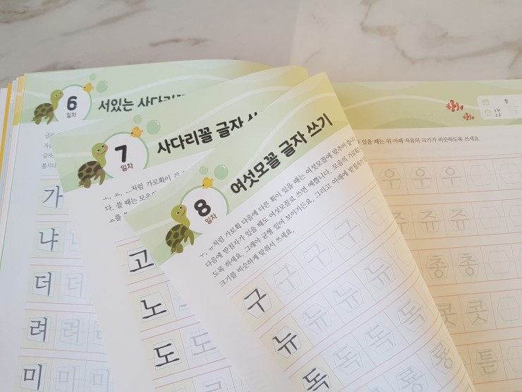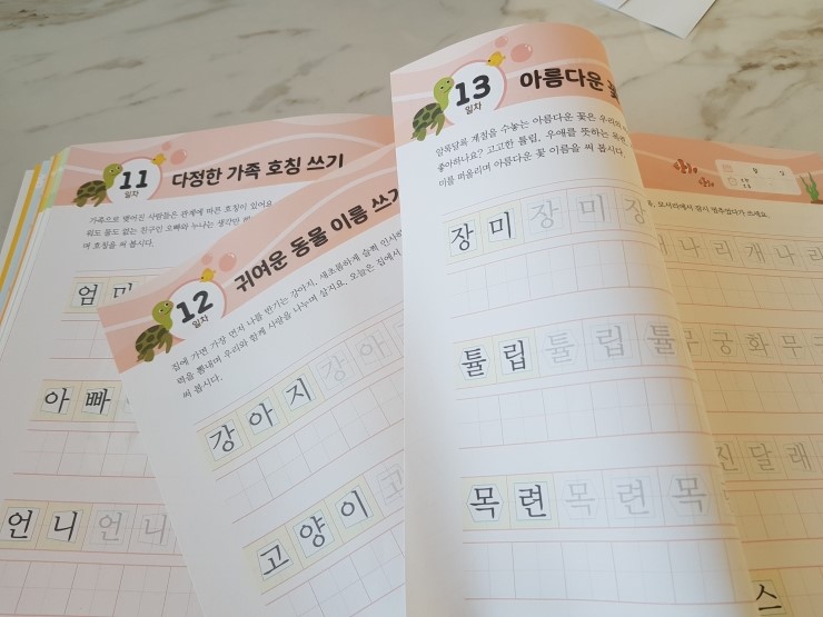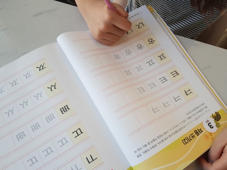 자모음 쓰기부터 시작해서 단어를 따라쓰는 내용을 확인하시면 더 그런 생각이 들지도 몰라요.