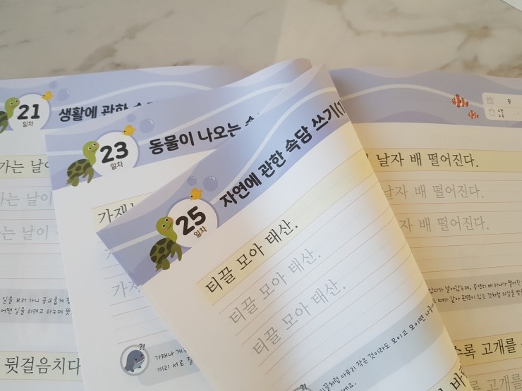 그 흔한 한글쓰기 교재도 한 권을 제대로 떼지 못하고 동생을 물려주었거든요.