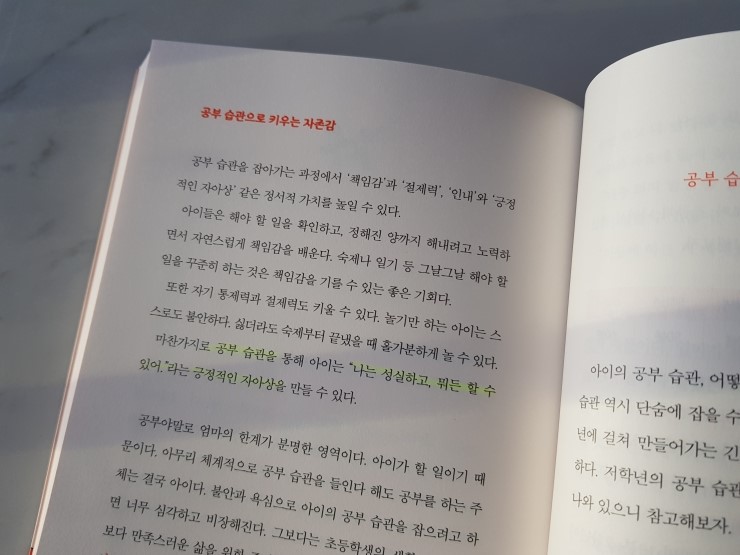 "공부 습관을 통해 아이는 "나는 성실하고, 뭐든 할 수 있어."라는 긍정적인 자아상을 만들 수 있다"