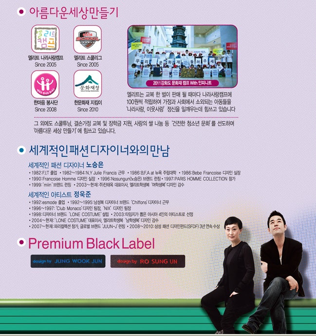 엘리트 교복이라면 이미 우리 어머니세대부터 익히 알고있는 전통의 학생복이지요. 그런 오랜 역사만큼이나 엘리트회사의 활동도 다양했네요. 여러분들도 함께 참여해보세요. 생각보다 어렵지 않답니다.