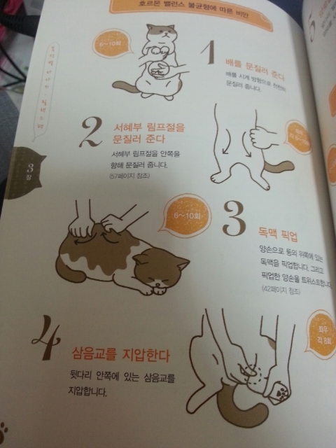 보면 고양이를 마사지하는법을 125가지를 소개해줍니다. 제가 몰랐던 지식도 나와서 너무 반갑기도 했지요 고양이들도 사람처럼 음과 양이 있다는