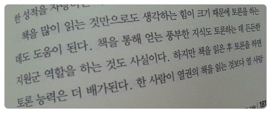 책을 많이 읽는 것만으로도 생각하는 힘이 크기때문에 토론을 하는데도 도움이 된다.