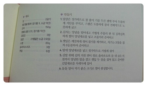 재료와 만드는 법을 친철하게 알려주는 레시피라지요