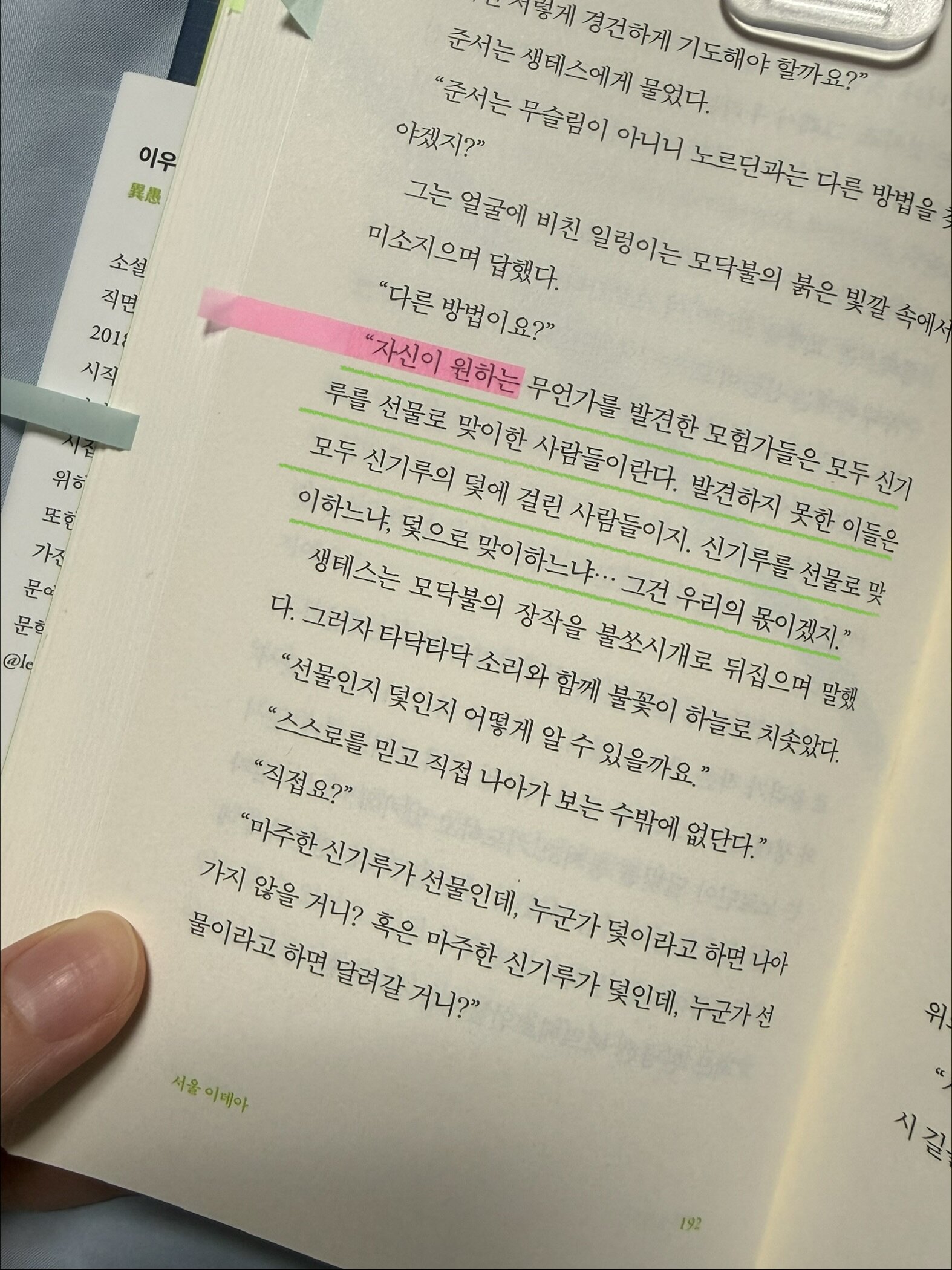 자신이 원하는 무언가를 발견한 모험가들은 모두 신기루를 선물로 맞이한 사람들이란다. ------ p.192