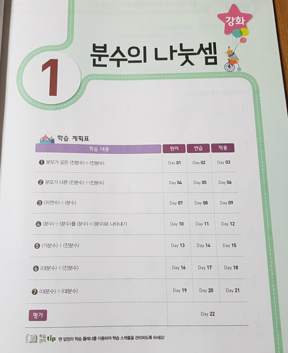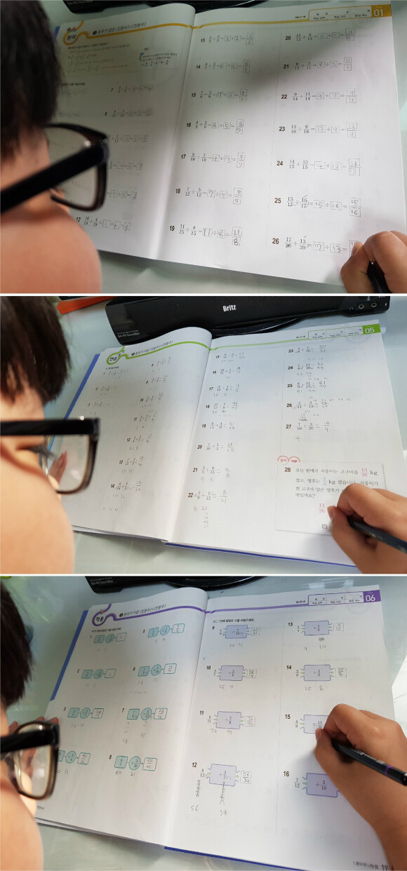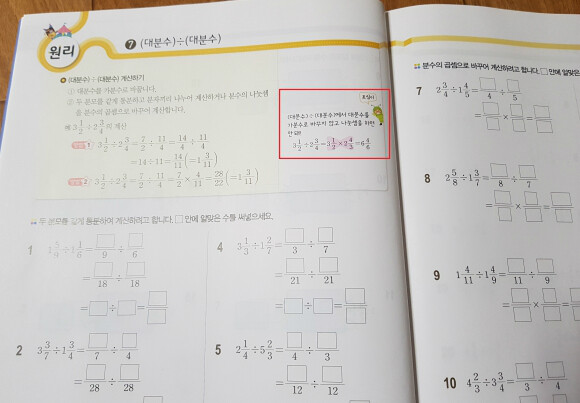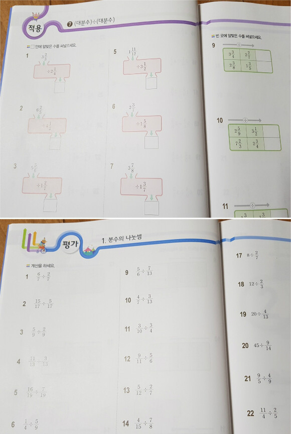 지금 아이가 풀고 있는 분수 단원에는 없는데요.