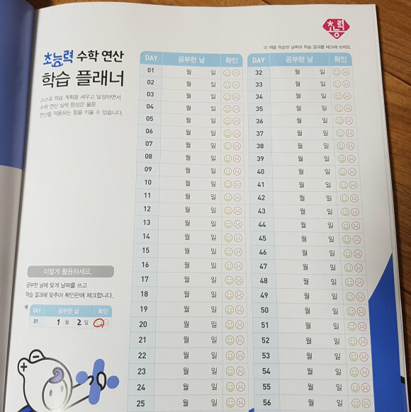 역시나 초능력 수학 연산에도 학습 플래너가 있네요.