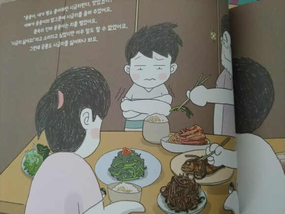 그래서 가족들은 평상시 용용이가 잘 먹지 않는 반찬들을 먹으라고 권하지요.