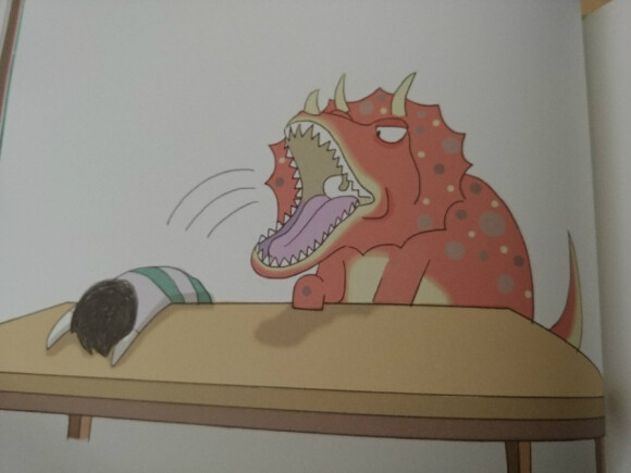 용용이는 공룡에게 왜 자기 가족들만 잡아 먹는지 궁금해서 물어요.