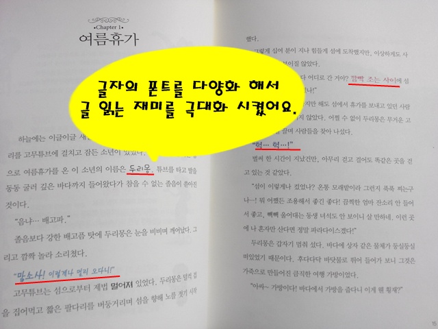 글자폰트나 크기가 천편일륜적이지 않고 어투에 따라서 다양하게 변화하니 글읽는 재미가 두배~