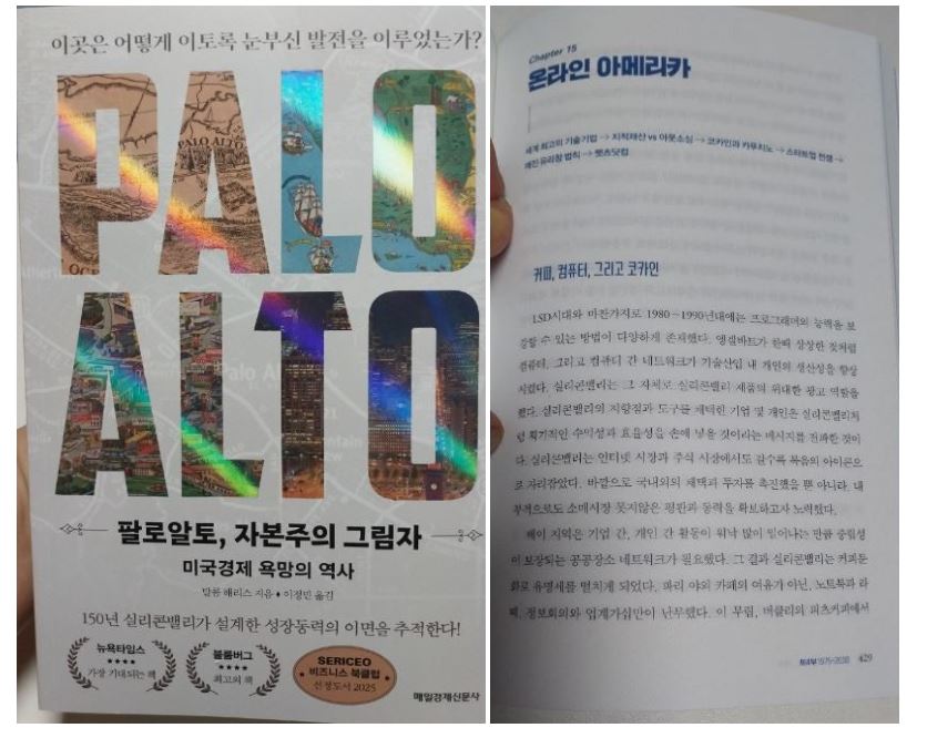 그곳에는 백인들이 만들어 놓은 백인 카르텔을 형성했고 백인의 약탈은 무방비 상태였다.  팔로알토의 150년 역사를 돌아보며 실리콘벨리의 실낯을 마주할수 있었다. 기회와 쇄신이 끊임없이 이뤄지고 있는 곳 실리콘 벨리 , 저자는