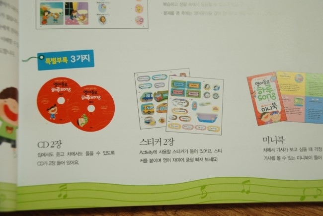 구성에 오디오 CD 2장과 , 스티커 2장 , 미니북도 있어요