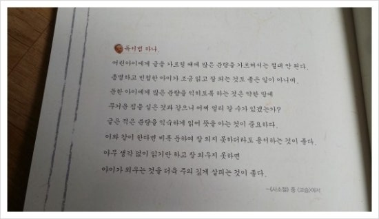 "부족한 것이 꼭 나쁜 것만은 아니고, 넘치는 것이 꼭 좋은 것만도 아닙니다. 책을 한 자, 한 자 베껴 쓰면 그 책이 통째로 마음속에 새겨지니 그보다 좋을 수 없지요. 책을 손쉽게 살 수 있다면 그토록 마음 깊이 새길 수 있을까요?"