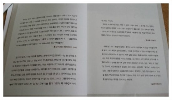 추천하는 분들이 유명한 분들이다 보니 이 책에 관심을 가지신 분들이 많았구나 하는 생각이 들었다. 특히 추신수 선수는 야구선수의 입장에서 이 선수들을 어떻게 보았을까