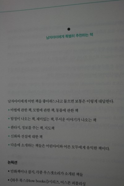 남자 아이들에게 추천하는 책이 소개되는 코너가 있었어요.