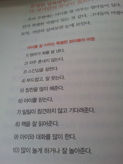 엄마로서 부족한 부분도 채워줄 수 있고, 또 아이 잘 키우는 방법도 들어 있어서 요점만 들어 있다고도 볼 수 있다.