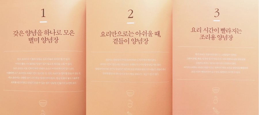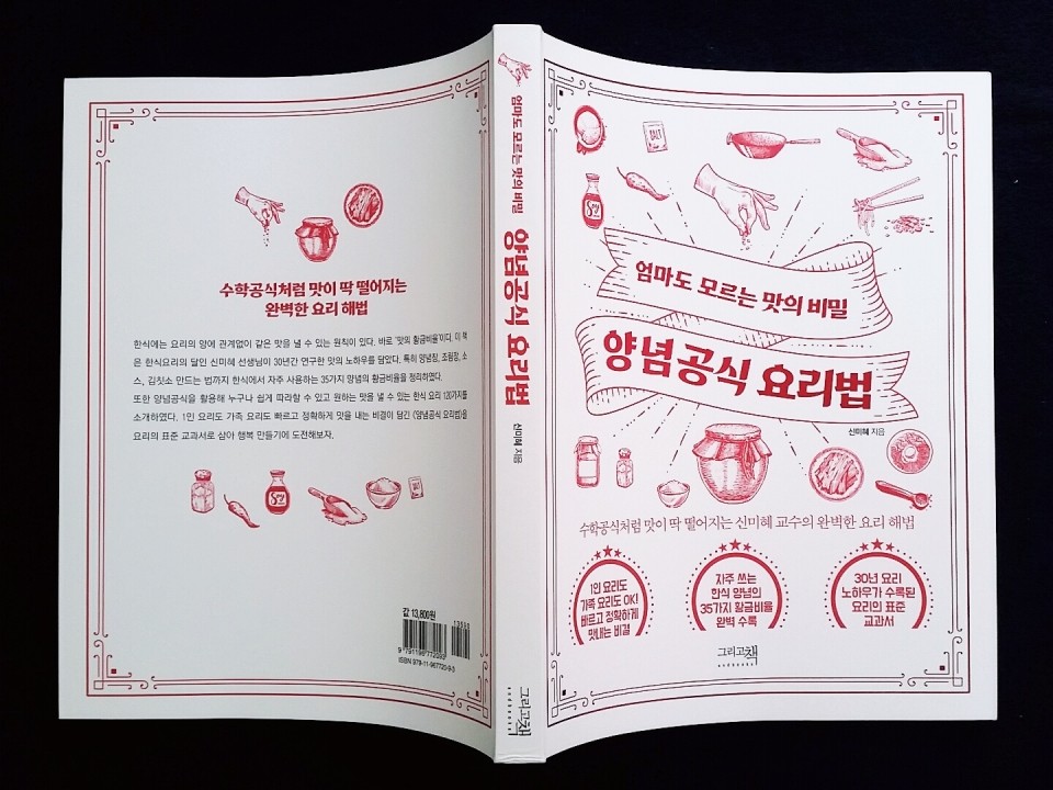 이 책은 30년 동안 요리연구를 하고 학생들을 가르치는 일을 해온 저자가 그 동안 축적된 '나만의 맛의 비밀'을 집대성하여 만들어낸 양념의 비법이자 노하우입니다. 흔히 대량요리에서는 맛있었지만 소량으로 만들 때는 그 맛이 안나는 경우도 많은데 그렇게 요리의 양에 관계없이 같은 맛을 낼 수 있게 찾아낸 표준화된 맛의 황금비율이라고 합니다. 책은 저처럼 기본도 안되어 있는 요리 초짜를 위해 요리의 기본, 양념공식을 알려주고, 그 양념공식을 기본으로 하여 실제로 요리를 해보는 레시피도 함께 수록되어 있습니다. 양념비율만 안다고 요리를 잘할 수 있는 것도 아니기 때문에 실제로 요리 레시피를 보며 그 양념을 어떻게 활용할지 실습을 해보는 시간을 가지는 것도 필요하니까요.