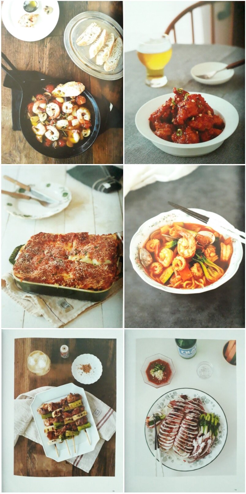술안주라고는 하지만 실제로는 식사 때 먹을 수도 있는 찌개와 전골, 국도 있고, 대부분이 일품요리로 술 없이도 식사용으로 먹어도 맛있어 보이는 요리들이라 책에는 따로 홈파티용 무슨용으로 나누어 놓았지만 전부 홈파티 용으로도 활용할 수 있을 것 같네요. 사실 개인적으로는 이 책으로 홈파티용 술안주 레시피를 배우고 싶었는데 소개된 대부분의 레시피가 홈파티에 어울리는 것들이라 그만큼 책이 더 쓸모있고 실용적이고 유용하네요. 만들지는 못해도 대부분 알고 있는 음식인데 그 중에는 얌운센, 콩불, 파피요트 같은 조금 생소한 음식도 있어서 새로운 맛에 도전해볼 수 있는 기회도 될 것 같네요.