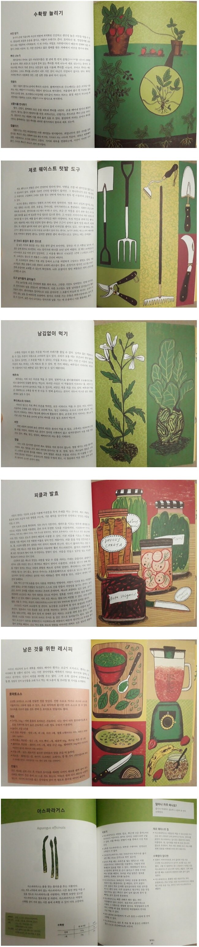 저자는 쓰레기를 최소화하며 농사를 지으려면 계획을 잘 짜야 한다고 조언합니다. 우선 무엇을 기르고 얼마나 심을지를 결정하고, 땅을 고르고 비옥하게 만들고, 씨를 뿌리고, 모종을 키우고, 키우는 작물의 특징에 따라 맞춤형으로 작물을 관리하여 수확량을 늘리고, 수확하는 과정에서 작물이 최대한 죽지 않게 잘 관리하고, 남김없이 수확하는 기술과 노하우가 필요하다고 하겠네요. 책에는 그런 비법들이 초보자들도 알기 쉽게 잘 정리되어 있습니다. 자꾸 제로 웨이스트에 촛점이 맞춰지다보니 쓰레기를 줄이는 방법에만 집중하는 것처럼 느껴지는데 실제로는 그만큼 효과적이고 효율적인 가드닝 지식과 테크닉을 배우는 거라고 생각하면 좋을 것 같습니다.
