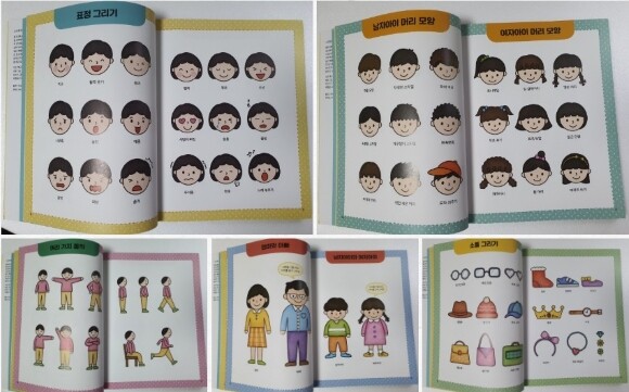 여러가지 다양한 표정을 짓는 얼굴이 그려져 있어서 따라 그리며 연습하기 좋더라구요.