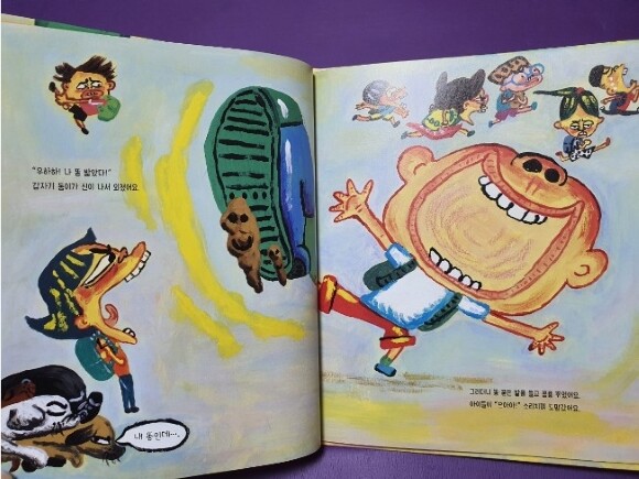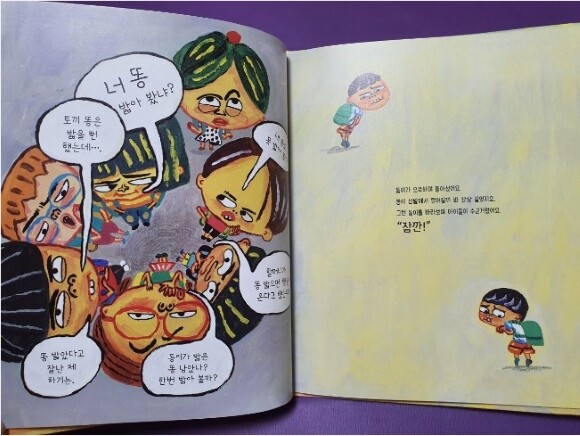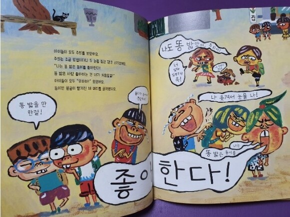 여기까진 일반적인 전개지요. 아이들의 익살맞은 얼굴에 표정이 완젼 살아있지요~ 동이 똥밟았대요~! 하고 말하는 목소리가 들리는 듯해요.