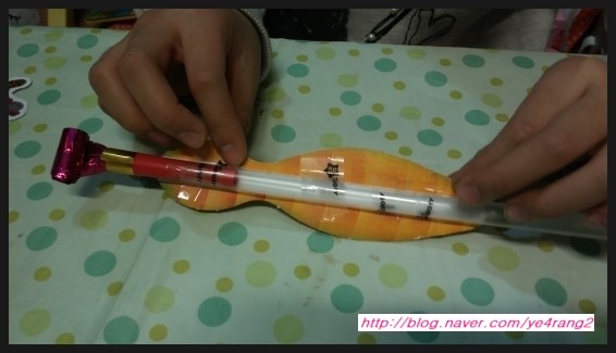 도매뱀 혀 모양의 피리를 굵은 빨대에 고정 시킨답니다.