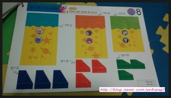 놀이딱지를 접어 통을 만들어요.