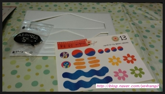우드락과 꾸밈 스티커. 똑딱 단추 준비했어요