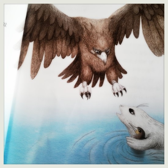 그때 독수리에게 잡혀가는 어린 가마우지를 발견한 두올이는