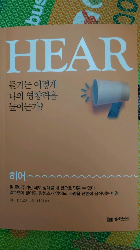2월 마지막 주말입니다. 3월이 머지 않았음을 느낍니다. 아침 저녁으로는 추운 기운이 감돌지만 낮에는 예전보다 제법 활동하기 좋아졌습니다. 이번에 소개할 책은 'HEAR' 입니다.