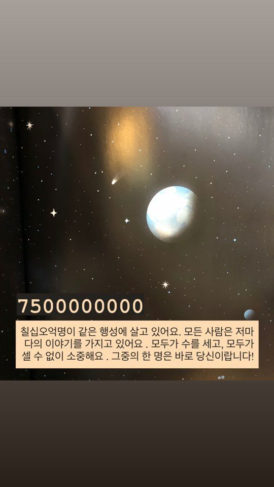 특히 마지막 장에서 ‘ 칠십 오억 명이 같은 행성에 살고 있어요. 모든 사람은 저마다 하나뿐인 이야기를 가지고 있어요. 모두가 수를 세고, 모두가 셀 수 없이 소중해요. 그중의 한 명은 바로 당신이랍니다.! “ 라는 구절에서 나 뿐만이 아니라 다른사람을 포함한 ‘모든’사람이 소중한 사람이라는 것을 알게 해주는 책인 것 같아요. 책 제목은 당신은 셀 수 없이 소중해요 ! 이지만 결국 말하고자 하는 것은 모든 이가 소중하고, 또 저마다 고유의 가치를 지니고 있다는 것 이라는 생각이들었습니다.