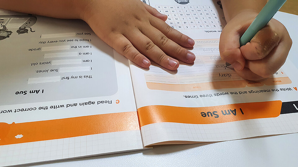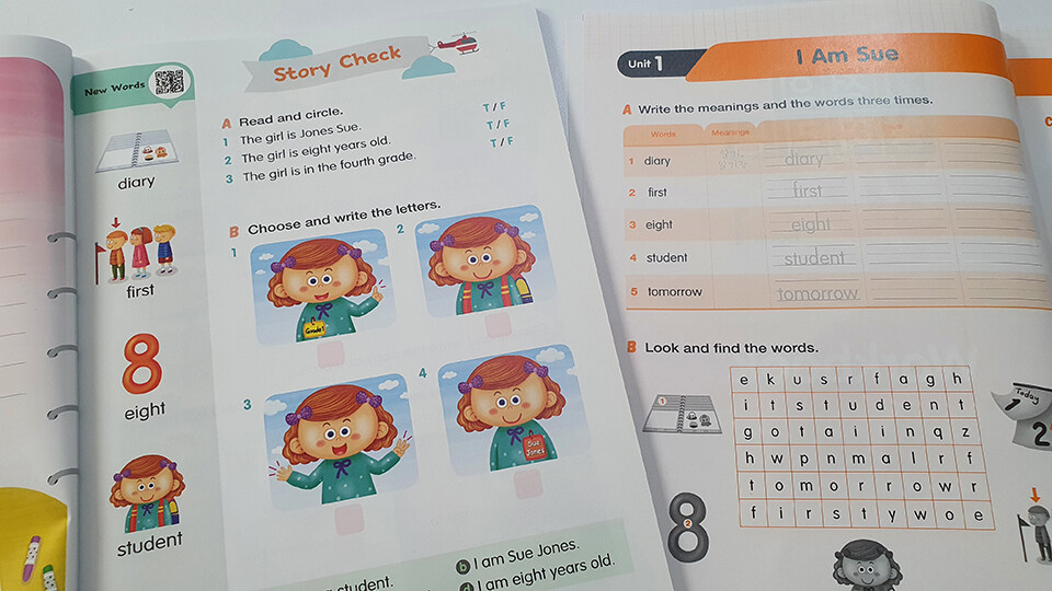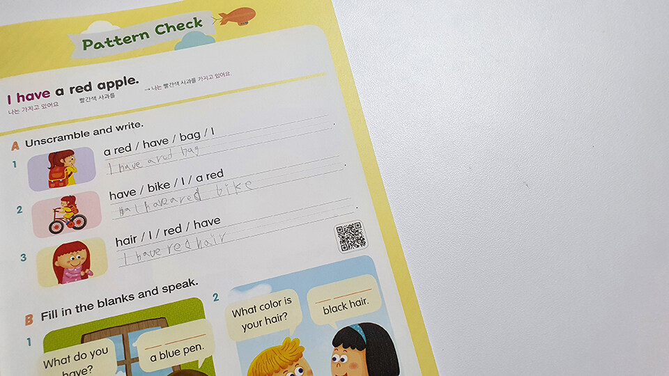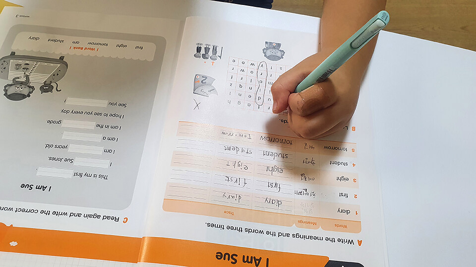 아이가 교재 안에서 단어를 찾아서 적더라고요.