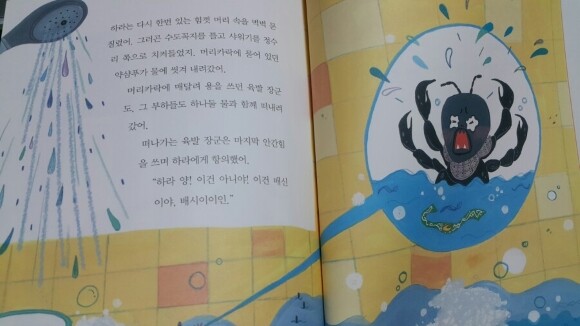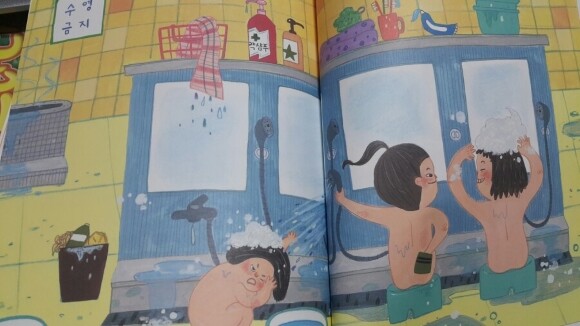 하라와 정은이는 나란히 앉아 목욕을 하고 먼저 머리부터 감았어. 약 샴푸를 짜서 머리에 마구 문질렀지.