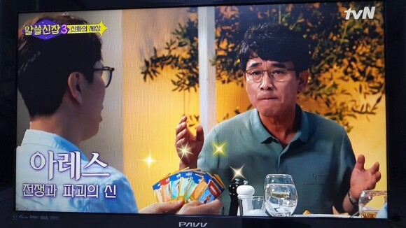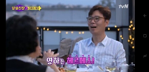 그때 하라의 어깨 위에 뭐가 있었어요. 하라는 아무렇지 않은 듯 떡볶이를 먹어요.