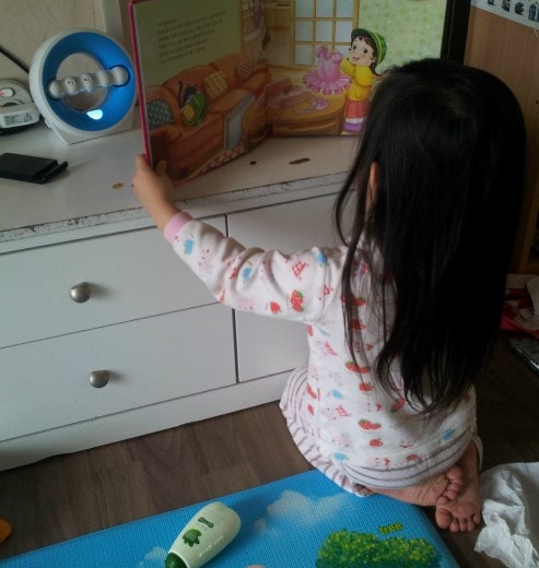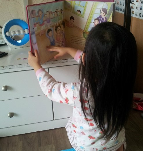 유치원에 가면 책을 보여주면서 이야기했어요. 우리수연이는 오늘 유치원에서 무얼배웠니??하고 물어봅니다.