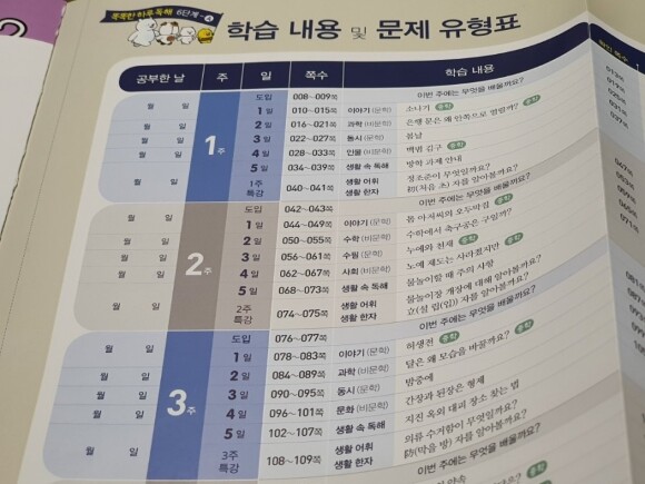 학습 내용과 문제 유형표를 보고 그 주에 학습하는 내용을 먼저 확인할 수 있었어요.