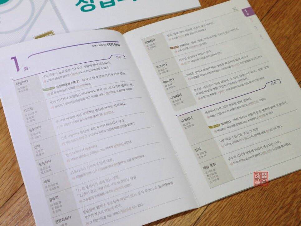 한자성어, 속담, 관용 표현 등을 배워볼 수 있다..