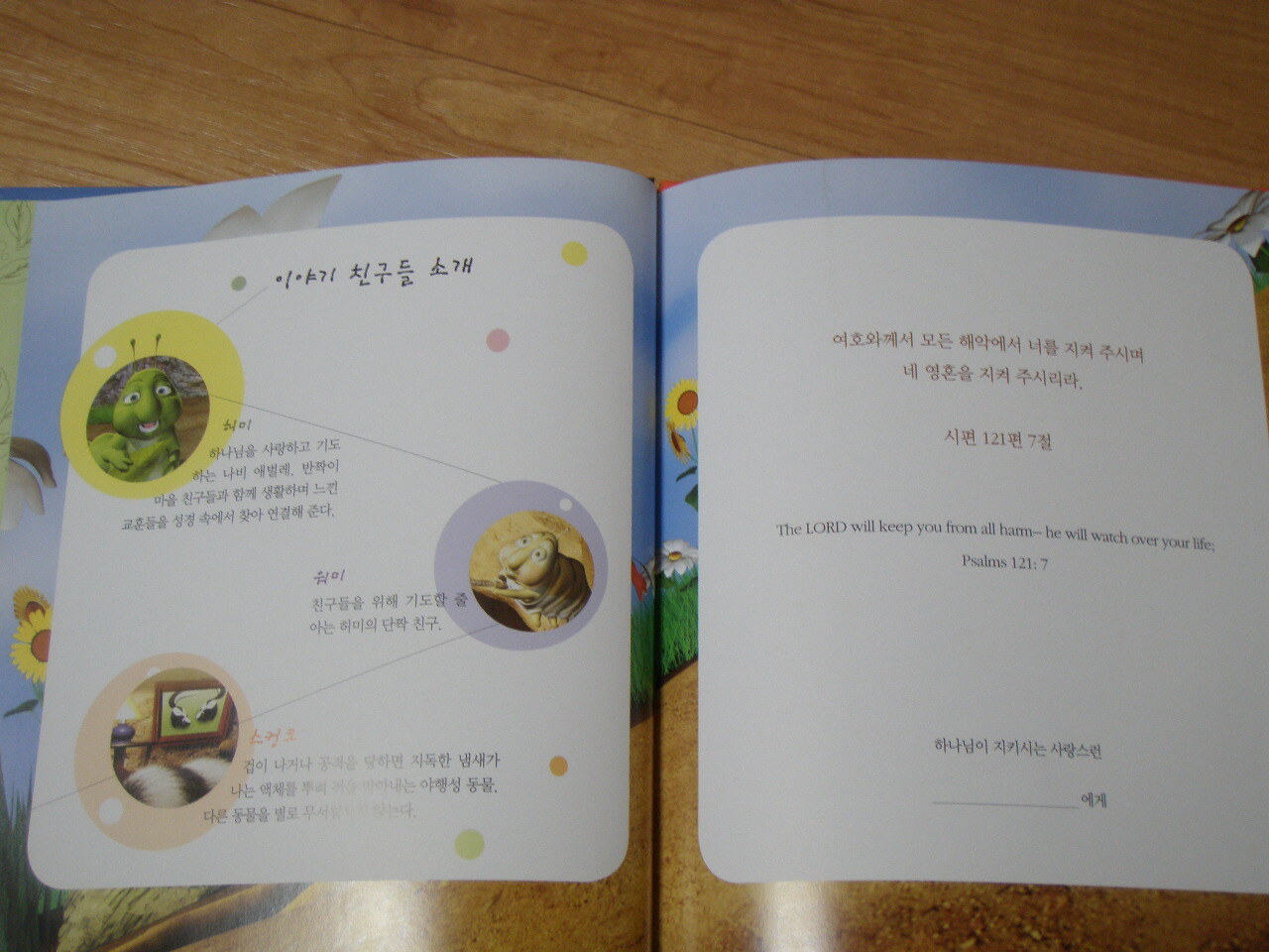 책을 펼치니 아이들이 이해하기 쉽도록 '이야기 친구들 소개' 가 나오고, 이 책의 중심이 되는 성경구절이 나오네요.