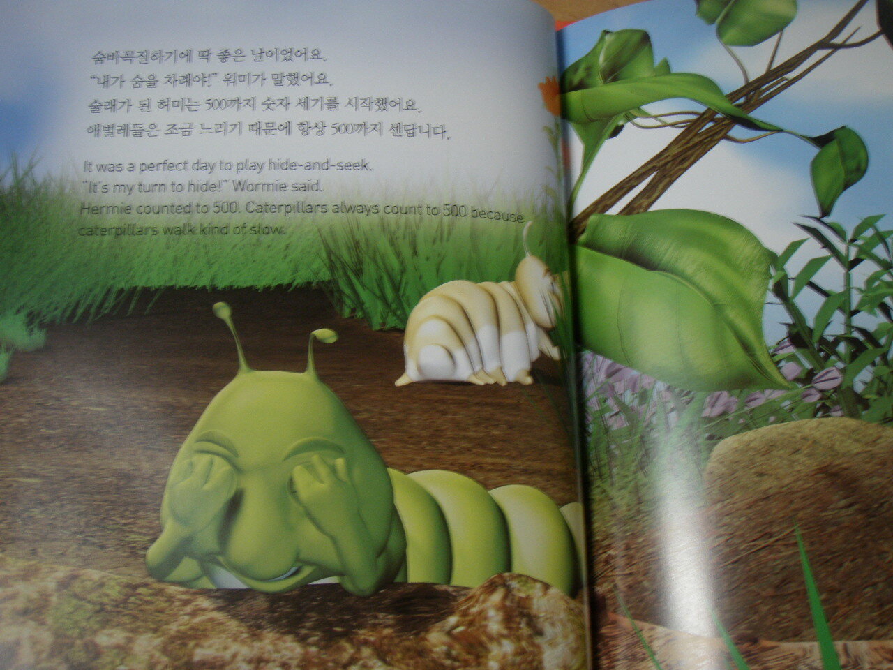 애벌레 허미와 워미는 숨바꼭질을 하다가 워미가 스컹크가 사는 구멍에 빠져요.