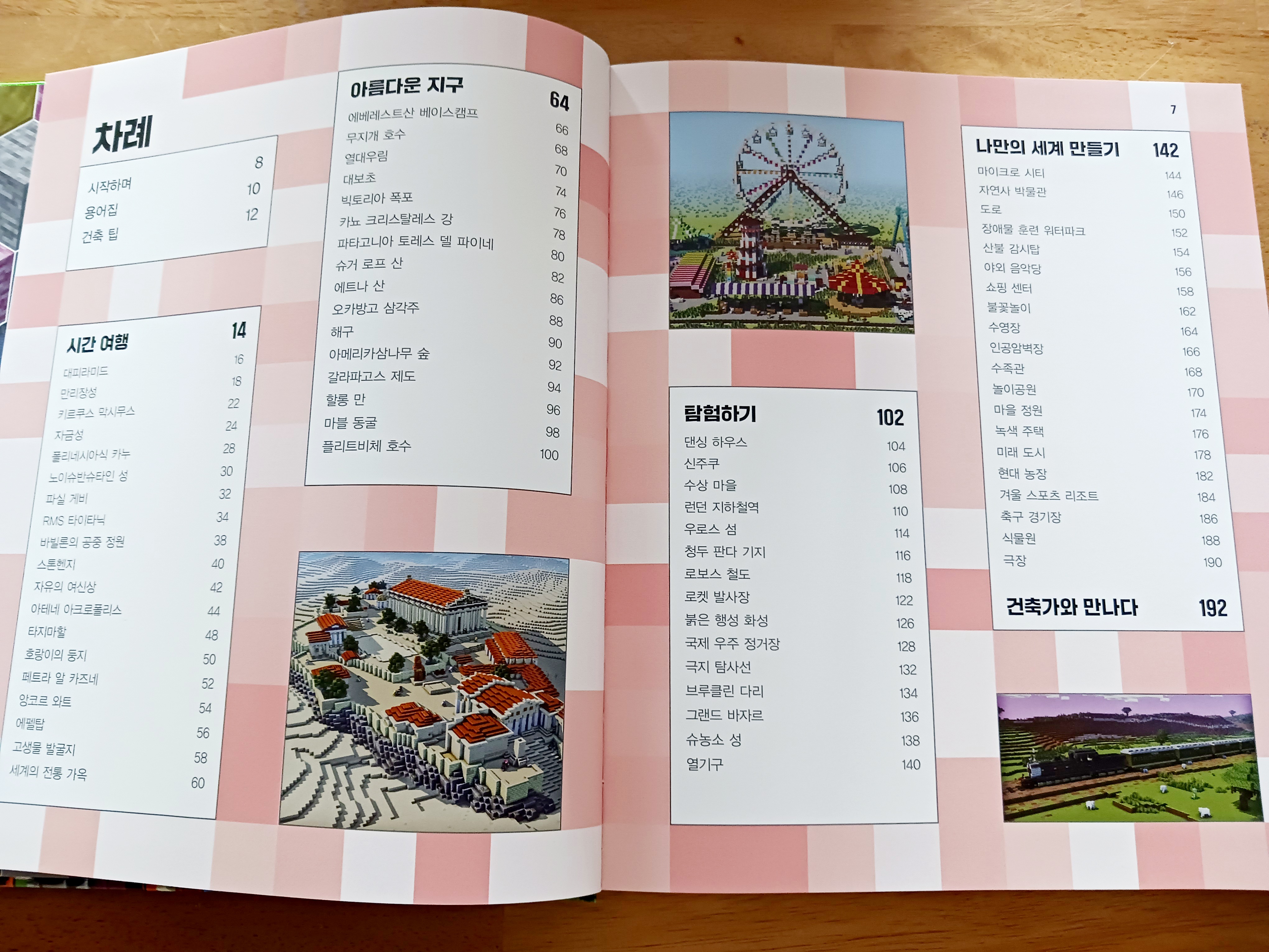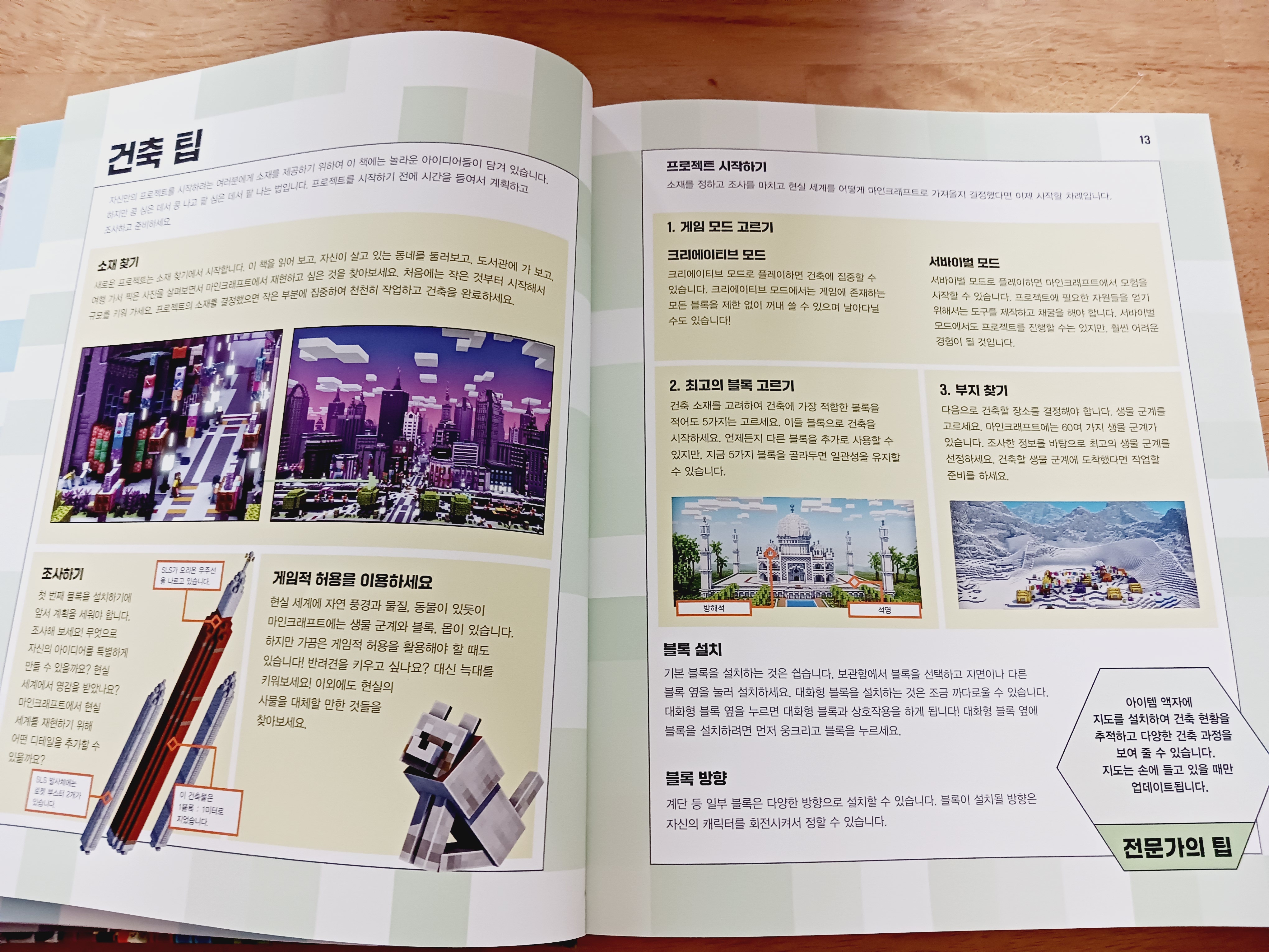 마인크래프트 건축 아이디어 북 너무 멋져요!!!저희집 아들들은 게임중독자입니다.아니...마인크래프트 중독자들입니다 ㅠㅠ그런데...저희집 아이들은...수학자가 장래희망이기도 합니다.건축설계사가 장래희망이기도 하지요.그런 아이들의 미래를 긍정적으로 이끌어 주고자 선택한 책...영진닷컴의 마인크래프트 건축아이디어 북....!!!!아이들이 2시간 3시간 작업해서 만들어 낸 것이 놀이공원 롤로 코스터인 것을 알아 차렸을 때...게임이 부정적인 것만은 아니구나 깨달았었습니다.마인크래프트로 대학을 가고 취직을 할 수 있다는 걸 알게 되었을 때 마인크래프트 라는 게임을 새롭게 보았습니다.그리고 나서 만난 마인크래프트 건축 아이디어 북....뭔가요? 이 책....!!!마인크래프트 건축 설계사 어린이들을 위한 책 아닌가요????'건축팁을 알려주고...만리장성 설계하는 법을 알려주는 게임 책 본 적 있으신 가요????단언컨데...마인크래프트는 쓸모없는 게임이 아닙니다!!!! 건설적인 게임입니다. 마인크래프트는 부정적인 게임이 아닙니다. 긍정적인 게임입니다^^그리하여...저희집은 마인크래프트 건축아이디어 북을 사랑하고...극찬합니다.ㅋㅋㅋㅋ아이들이 책을 보자 마자 엄마 감사합니다...하면서 들고 닌텐도 방으로 들어가네요..아이들의 미래를 응원하며...마인크래프트 건축아이디어 북...감사합니다...^^