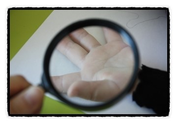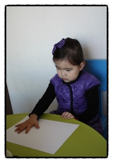 손을 종이에 대고 그대로 베껴 그린 뒤에 손바닥에 손금도 살펴보고 따라그렸어요.